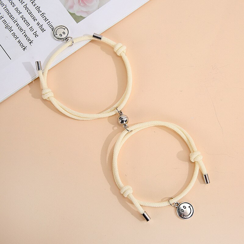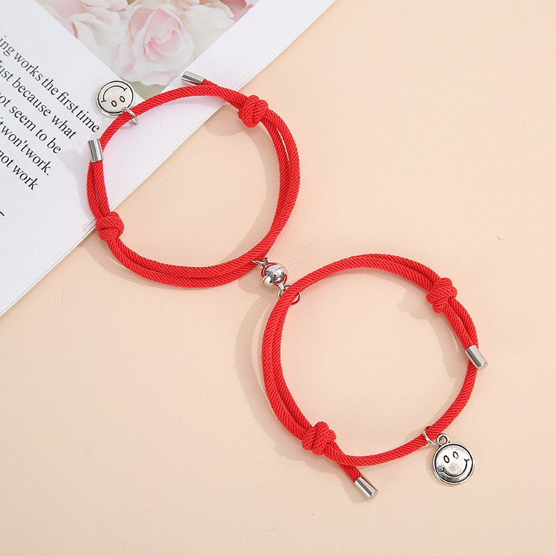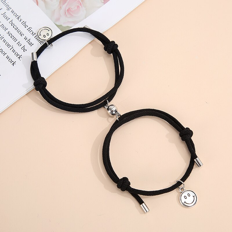 2 Pz/set Delle Coppie Della Lega di Attrazione Magnetica Sfera Creativa Bracciali Sorriso Pendente Fatti A Mano Tessuto di Amicizia Dei Braccialetti Dei Monili del Regalo