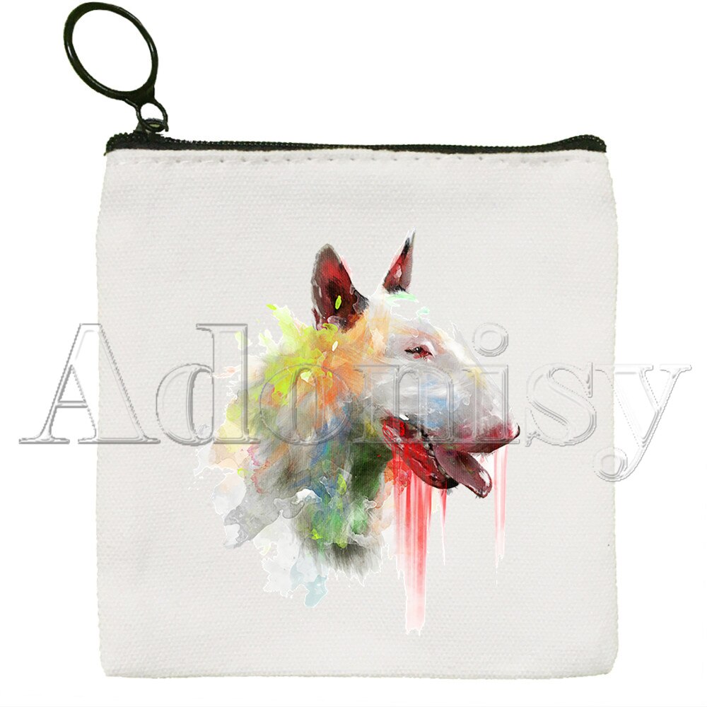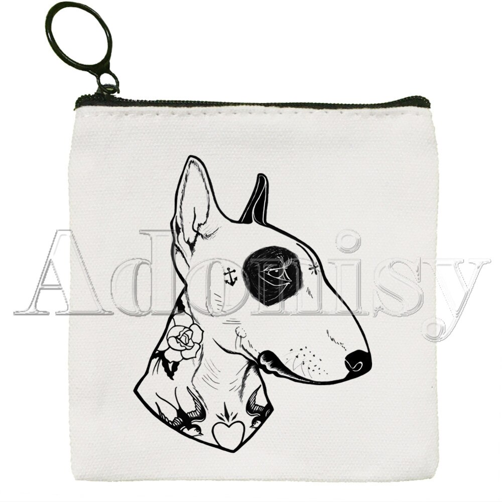 Bull Terrier borsa di tela borsa bianca pura, borsa con cerniera borsa portamonete pochette