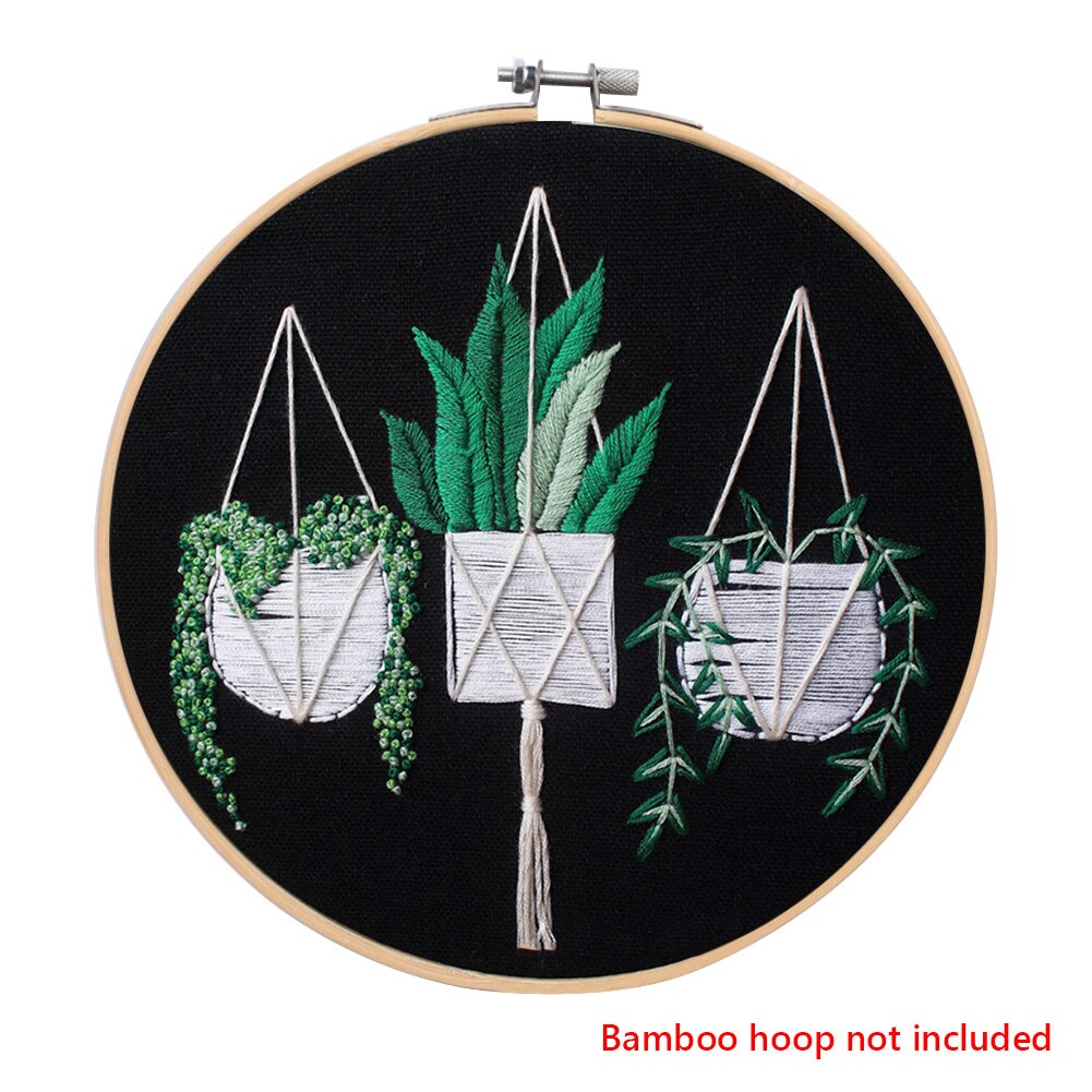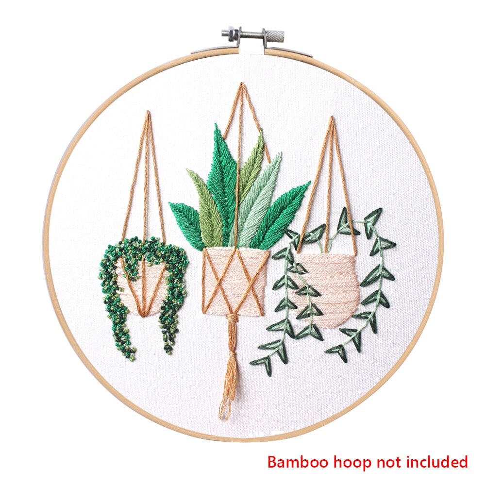 Embroidery Kit Beginner DIY Stampe Starter Plants Pattern Cloth Color Threads Tools Craft Round Cross Stitch Sewing Craft Kit